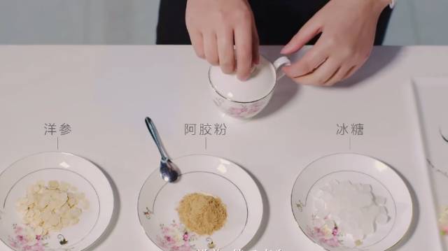 【制作】把阿胶、西洋参、冰糖打粉,按配方比例混合均匀,密封保存