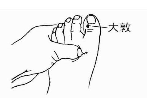 大敦穴位于大脚趾内侧的趾甲缝旁边。“敦”是厚的意思,“大敦”就是特别厚。大敦穴又是一个井穴,“井”是源头的意思。