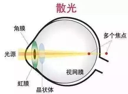 由于角膜和晶体的表面弧度不平均。眼睛就如同一个相机,角膜就有如相机的镜头。影像透过角膜的折射聚焦,在视网膜上形成清晰影像,就正如相机镜头对焦把景物投射到底片上。