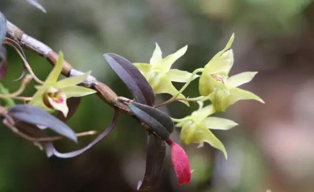铁皮石斛又名铁皮兰、铁吊兰、铁皮斗,俗称黑节草,为兰科石斛多年生附生草本植物,被称为千金草、植物黄金、软黄金,是一种名贵中药材,其味甘,性微寒,归胃、肾经,具有养阴清热、益胃生津的功效。