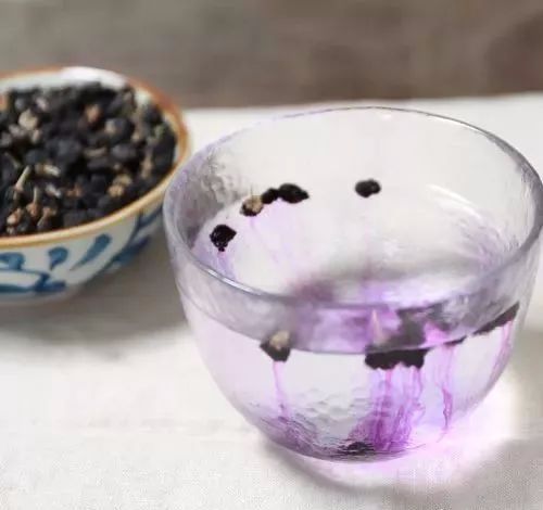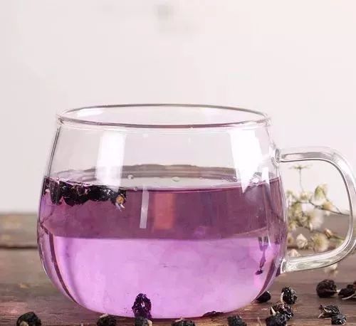 3.黑枸杞冲泡后,弥漫着浓浓的蓝色或者紫色,是富含极高的原花青素的缘故。黑枸杞在碱性水中浸泡呈现蓝色,在酸性水中侵泡呈现紫色。
