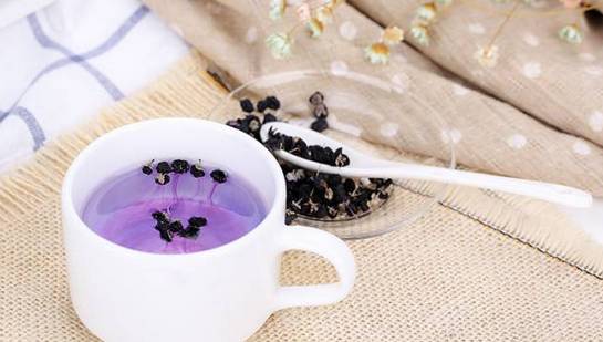3、静置饮用:静观花青素丝丝释放,颜色越来越深,赏心悦目