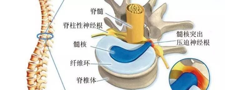 腰椎间盘突出症,好发于20-45岁的青壮年,男性多于女性。腰椎间盘由髓核和纤维环构成,髓核就像QQ糖一样充满弹性和水分,外面的纤维环就像脆骨一样充满弹性和水分,有一定硬度,保护里面的髓核。椎体其实就是骨骼,马尾神经的部分里面神经密集,这些神经像毛笔一样被固定在椎管这个“笔管”里,下肢的神经都在这里面。
