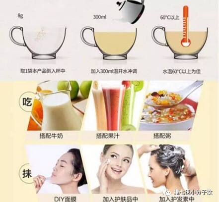 1、小分子肽一袋、150毫升至200毫升冷开水或60度左右温开水。