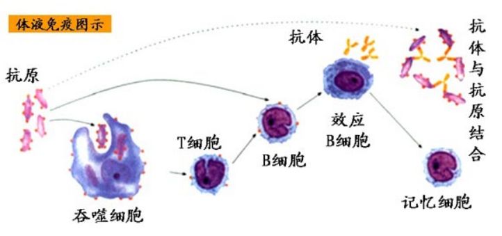 【如果同样的病毒再一次入侵的话 就是直接刺激记忆B细胞 然后记忆B细胞刺激效应B细胞 后面一样】