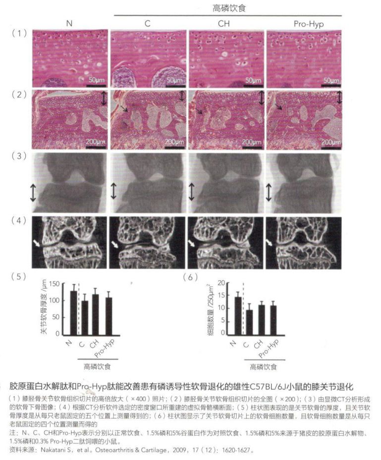 实验证明了蛋白肽对软骨具有保护作用,能够抑制软骨细胞的损失以及磷诱导的降解引起的关节软骨层变薄。