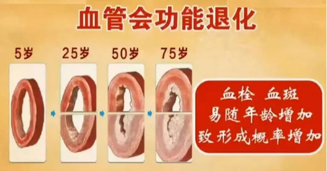 年龄增长,体内肽的合成减少,当然血管也缺乏了肽这种原材料,再加上不健康的血液一直在血管中流动,很多“垃圾”都粘附在血管壁上,加速了血管的老化。