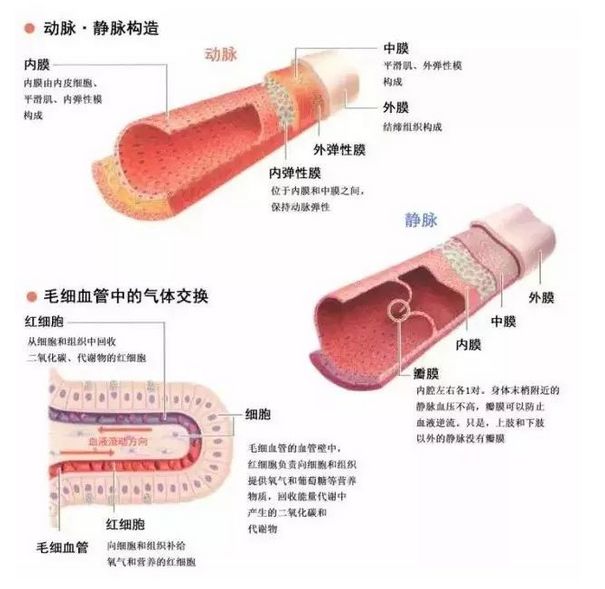 人体的血管分为动脉血管、静脉血管和毛细血管。动脉血管和静脉血管比较厚,分为三层,毛细血管比较薄,只有一层。无论哪种血管,主要原材料的90%都是肽。