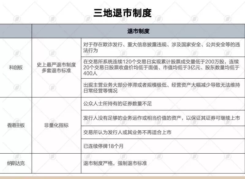 当然,上市条件门槛的降低需要成熟的投资人和后续的制度来支撑。不同市场的投资人看懂风险、管控风险的能力亦有差别。该资深人士表示,相对而言,因为已发展较为成熟,香港市场和纳斯达克市场的投资者是比较理性、有经验的投资人,所以即使将上市门槛放低也仍然比较可控。并且,退市机制也比较完善。