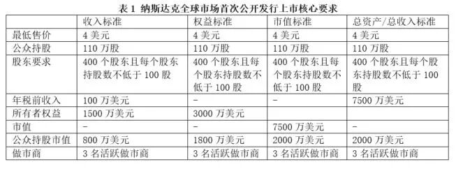 因为纳斯达克三层市场各有标准,我们以第二层——纳斯达克全球市场为例,列举上市标准:
