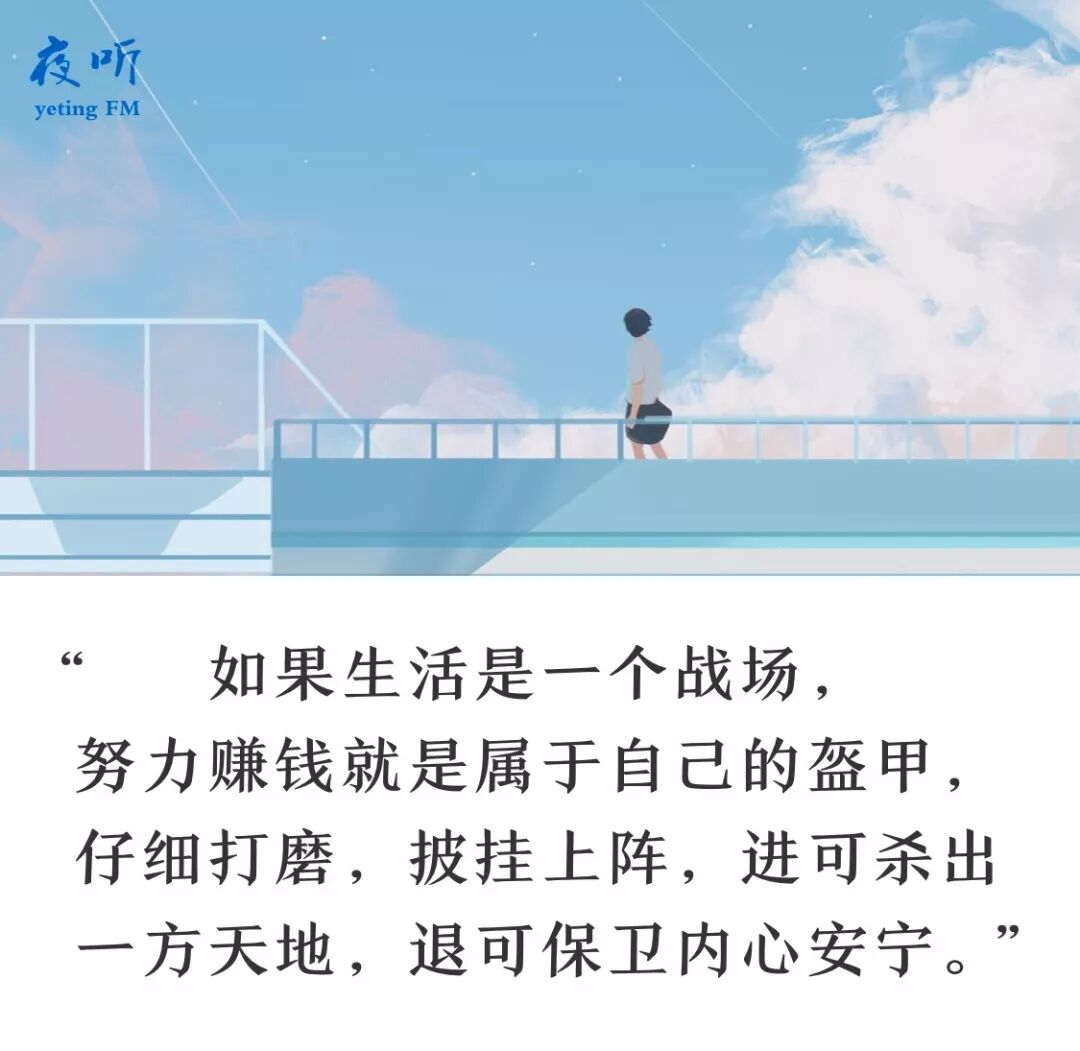 如果生活是一个战场,努力赚钱就是属于自己的盔甲,仔细打磨,披挂上阵,进可杀出一方天地,退可保卫内心安宁。