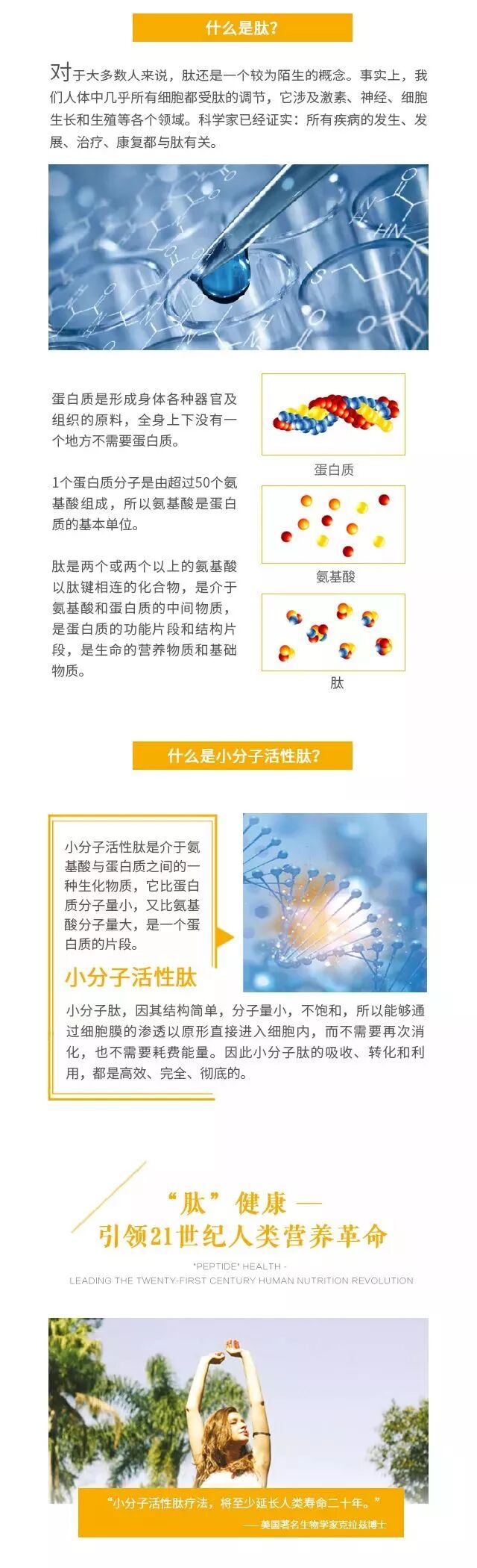 ”我”不是化妆品,但“我”可以让你面若桃花,拥有美丽容颜/可爱..“我”不是安眠药,但“我”可以帮你改善睡眠,从此不失眠..”我”不是妇科药,但“我”可以帮你调理内分泌,从此做自信女人 ..”我”不是抗癌药,但“我”可以抑制肿瘤,还你灿烂人生..”我”不是保健品,但“我”可以帮你调理身体,强筋健骨..”我”不是胰岛素,但“我”可以调理血糖,帮你恢复胰岛功能..”我”不是药品,但“我”可以起到药物起不到的作用.不是药品胜似药品..请记住我名字:小分子肽营养品!