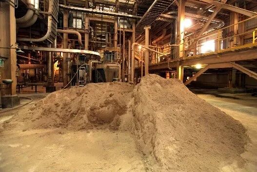 ▲芒廷山口稀土加工设施内待处理的稀土精矿