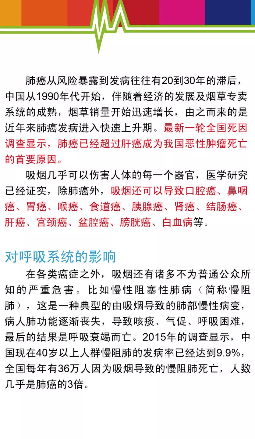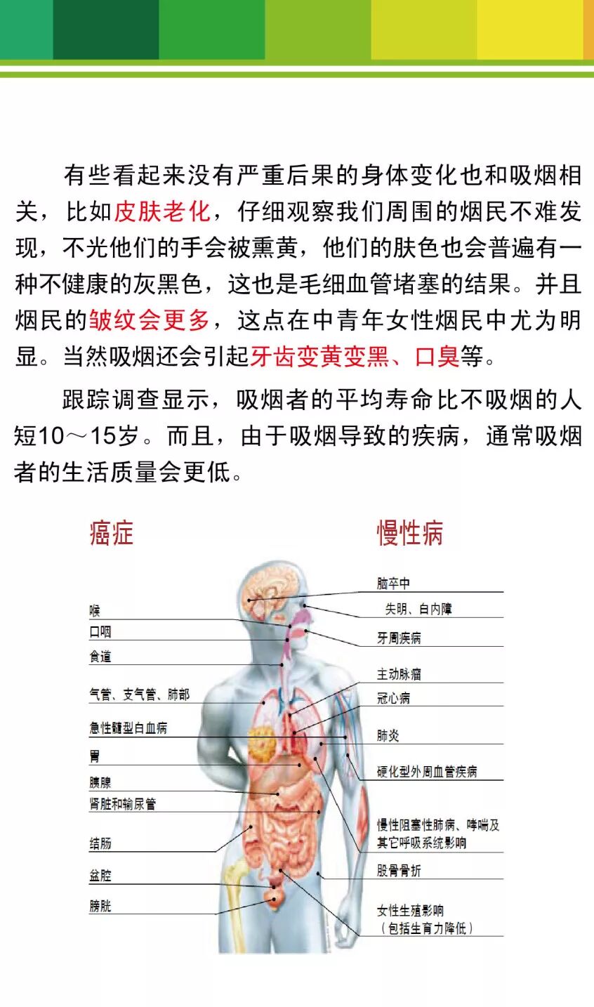 ◇烟草每年使700多万人失去生命,其中有600多万人缘于直接使用烟草,有大约89万人属于接触二手烟雾的非吸烟者。