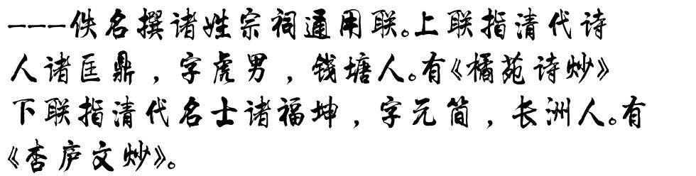 诸俊平,出生地是上海市,祖籍常州横林诸家塘,词堂为新修,抗日战争期间曾经驻军一个骑兵营破坏沪宁线铁路而被日本军人所毁(附近就此一处可以驻扎这么多人),姓氏出于山东诸城,据说姓氏是黄帝所封。祝愿诸姓家人兴旺发达,万事顺利