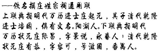 巜庄氏宗亲》 楚庄世代一笔姓, 血脉相连宗亲情; 五湖四海聚兄妹, 携手共进展英雄。