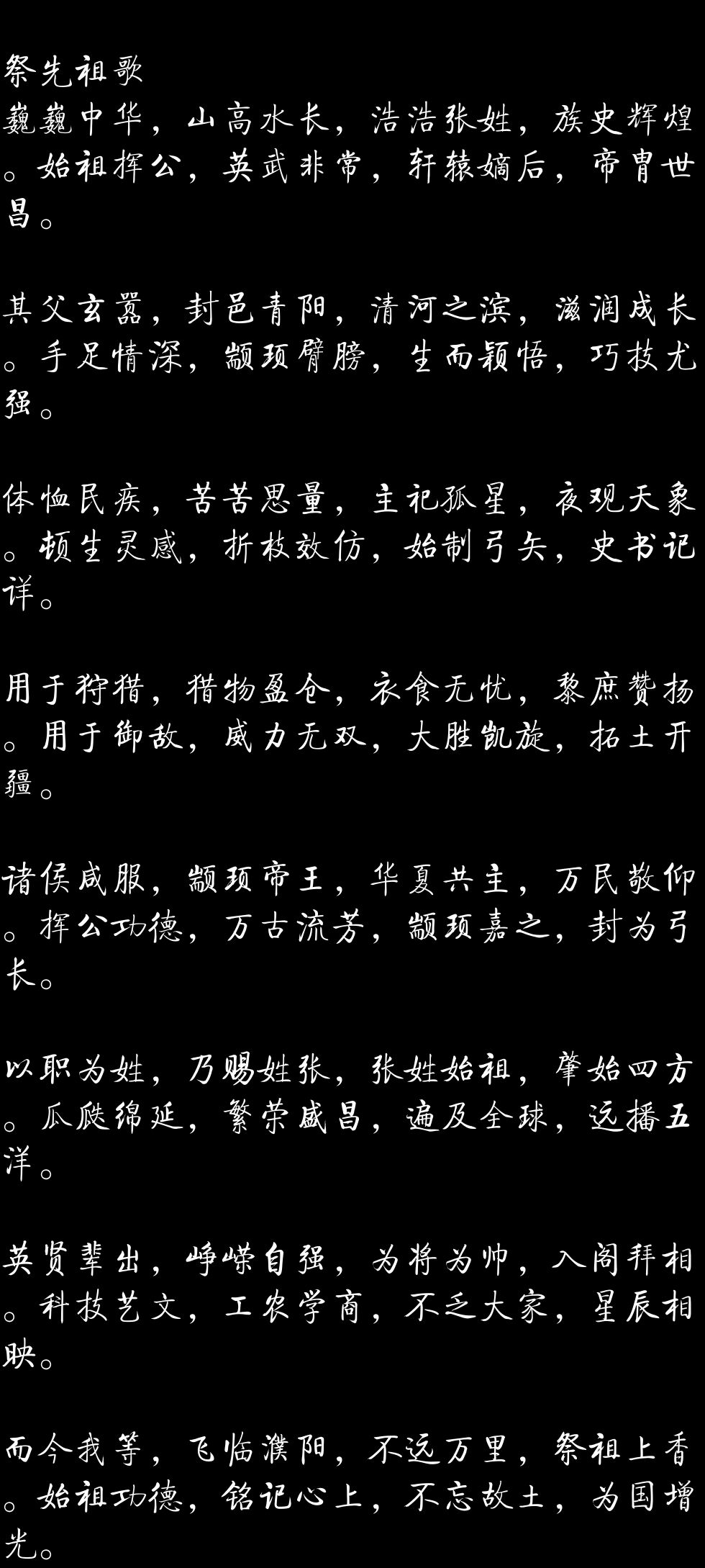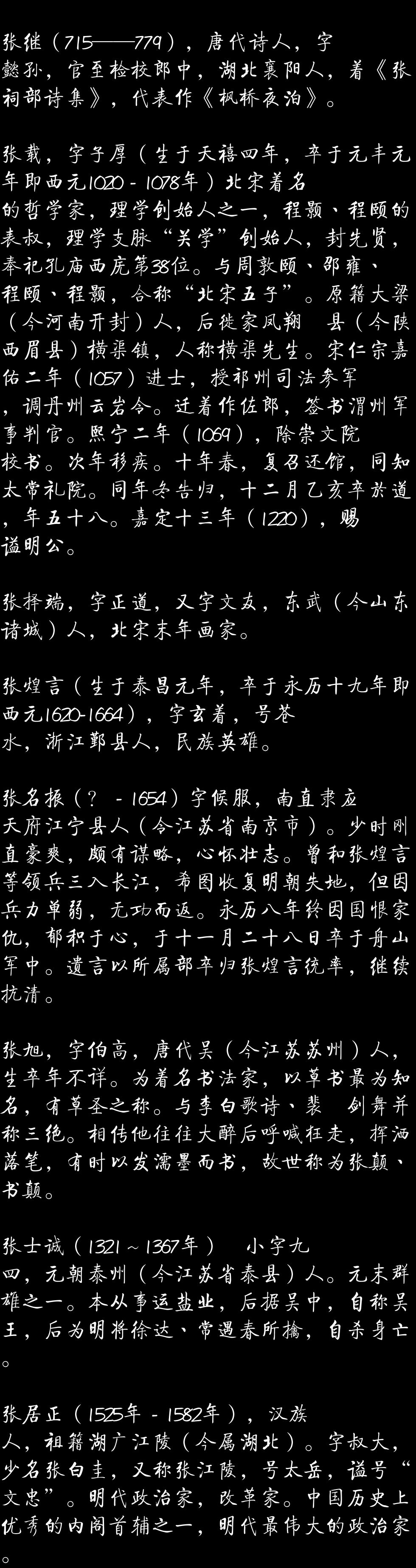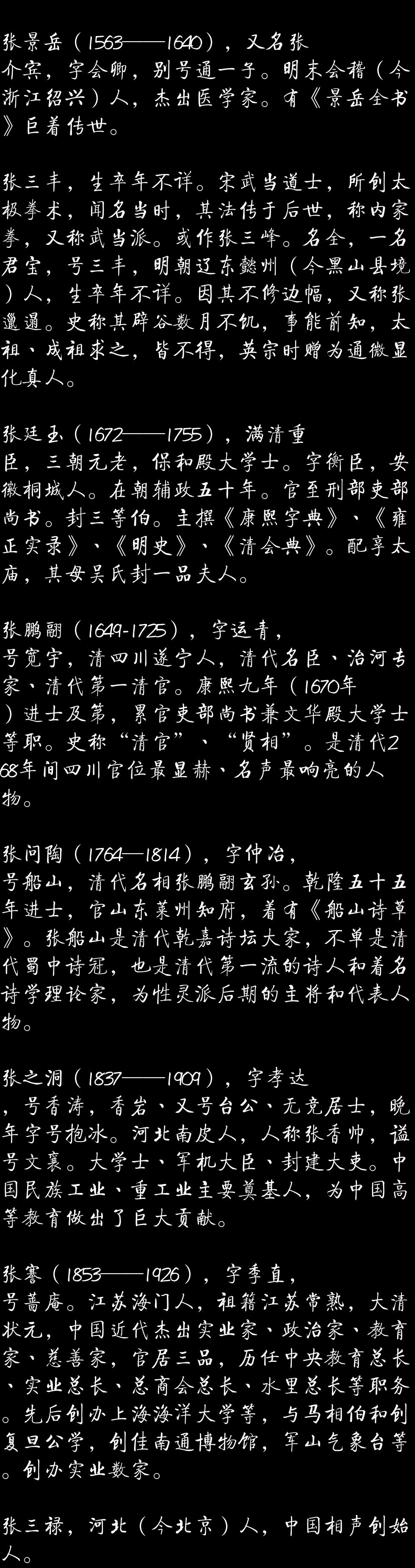 中华广袤大家族, 张氏英名万古传。