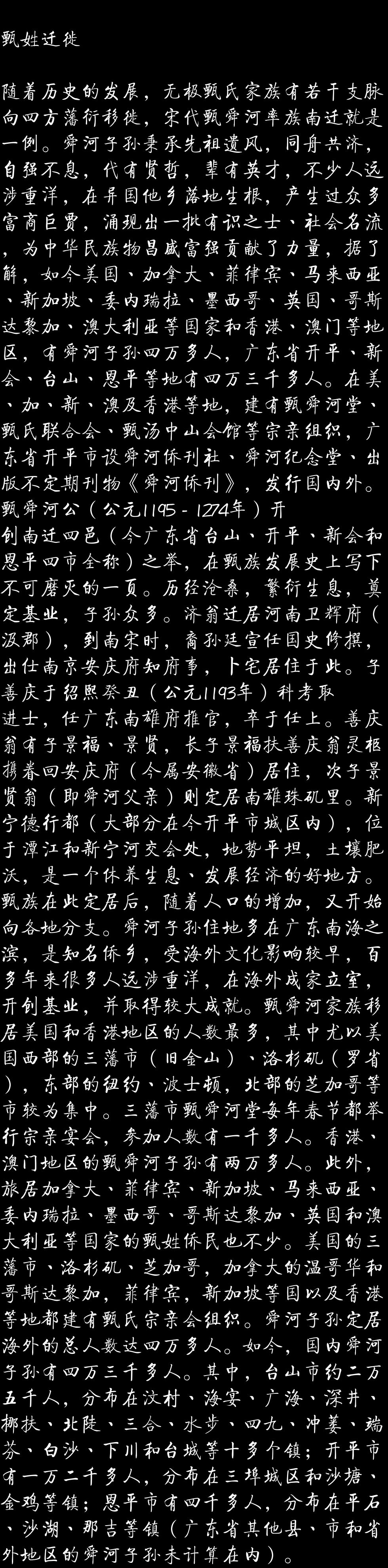 我家就是从山东省即墨市移风店镇甄家庄迁移到黑龙江省五常市。家谱上先祖:甄义德公119世,从先祖到我孙子辈13代人。我甄国军129世。家谱上的字辈:义,守,法,可,文,士,秉,显,永,万,国,宏,子。去年我们和寿光甄家北楼,鱼台家谱已接续~。