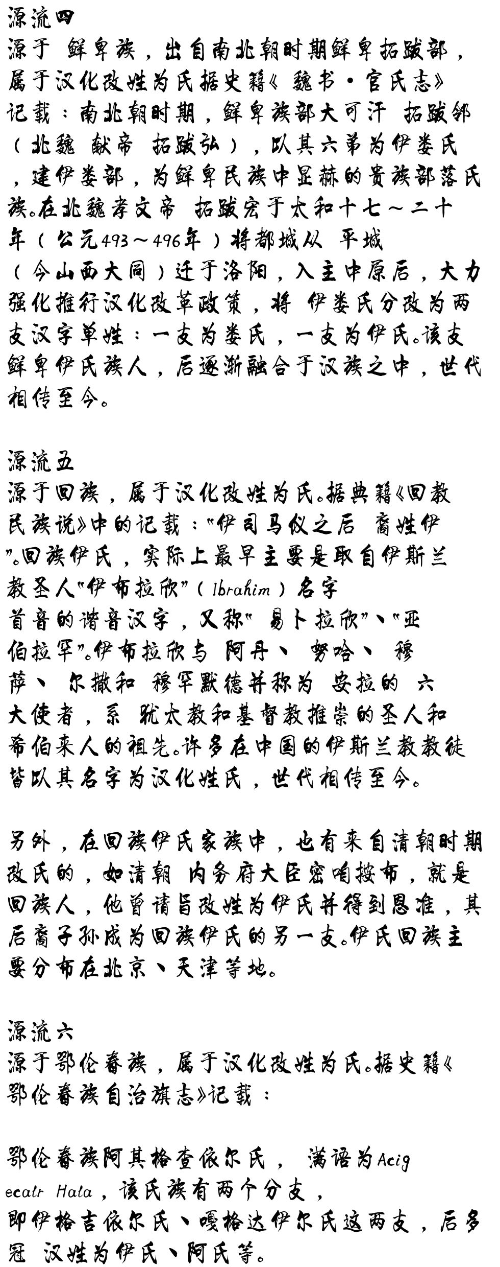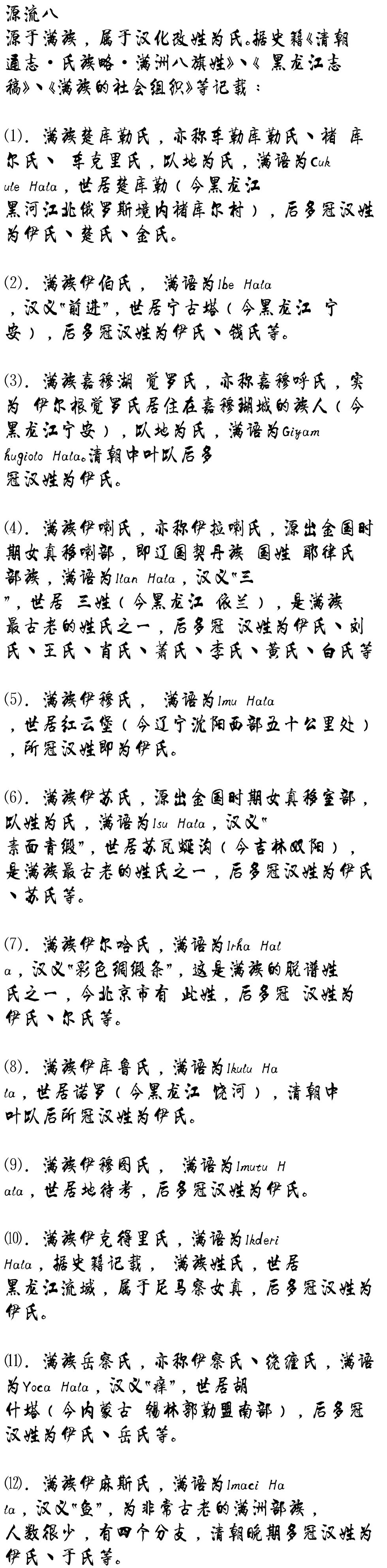 还有一支入闽的伊氏,占全国六份之一,属于太原郡,好像在本文忽略了。在上代祖上传说,全国伊家原来应该有五个郡。有谁知道吗?