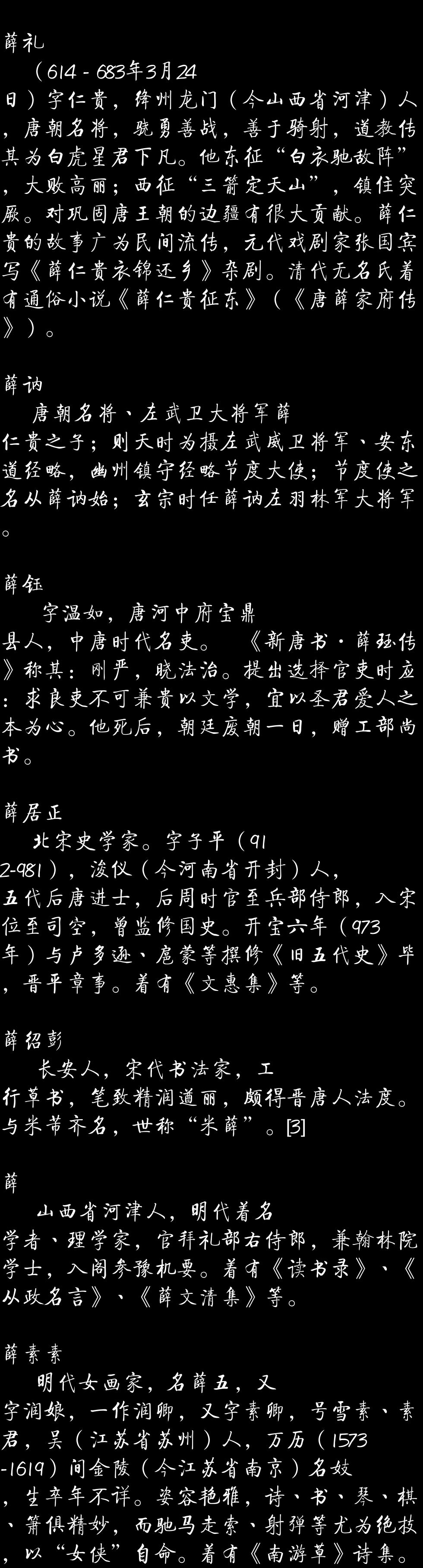 百家姓历史355——薛氏家族资料