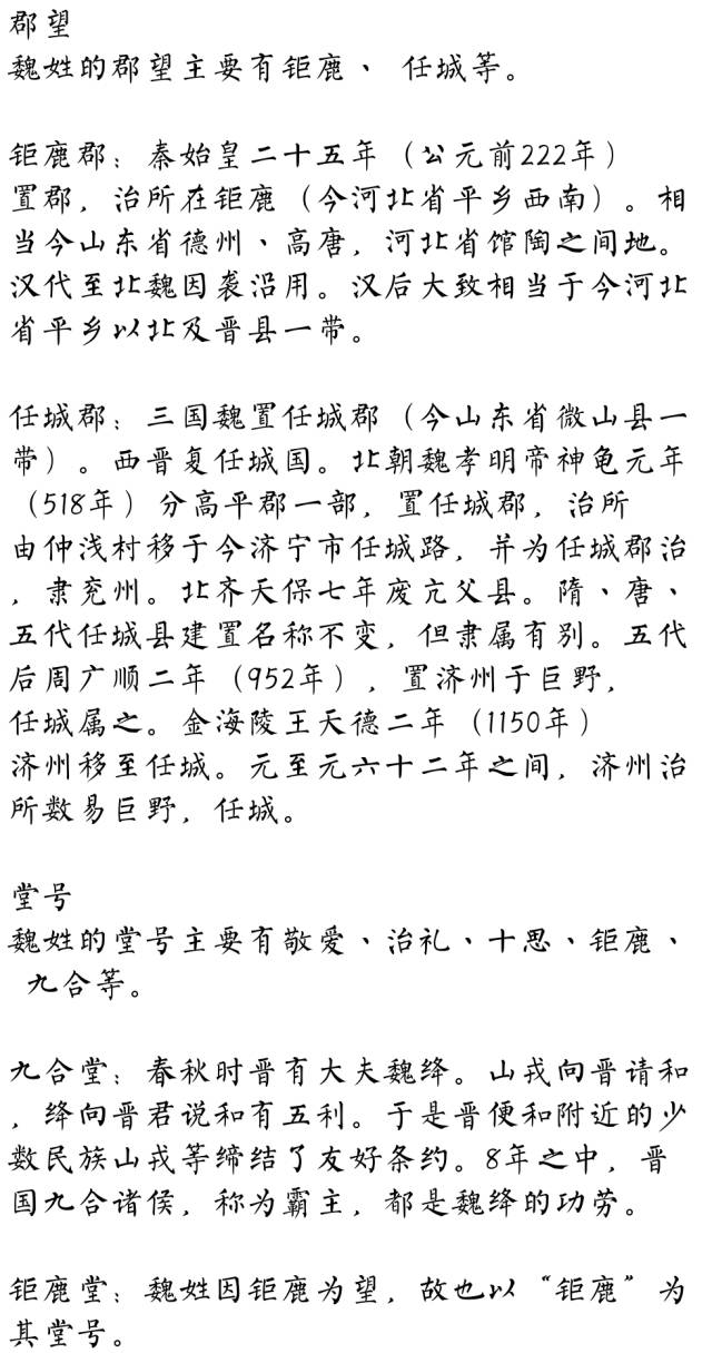 巍巍魏氏,渊源流长,同根同族,万代流芳