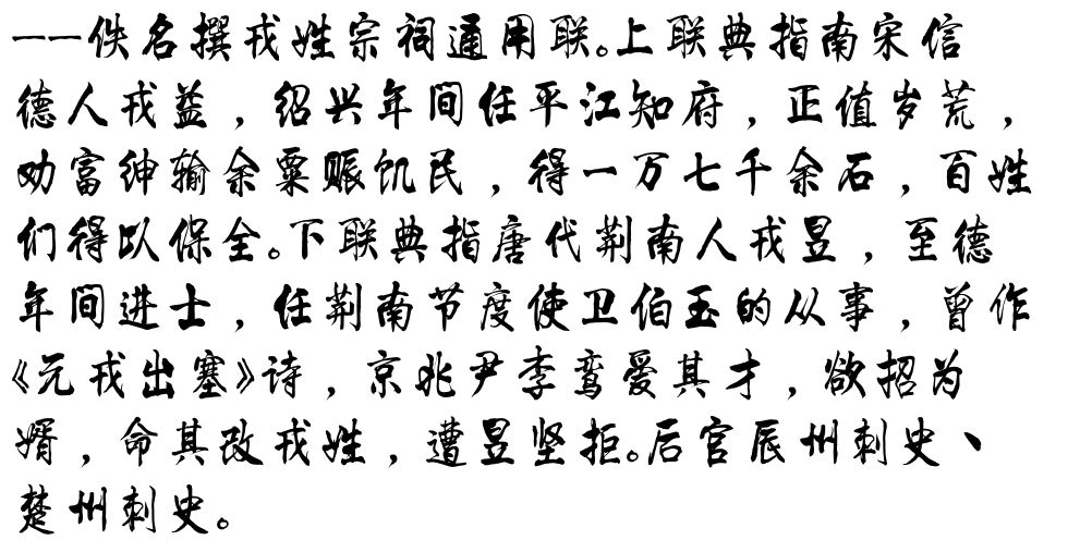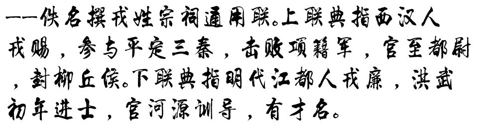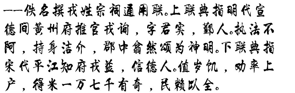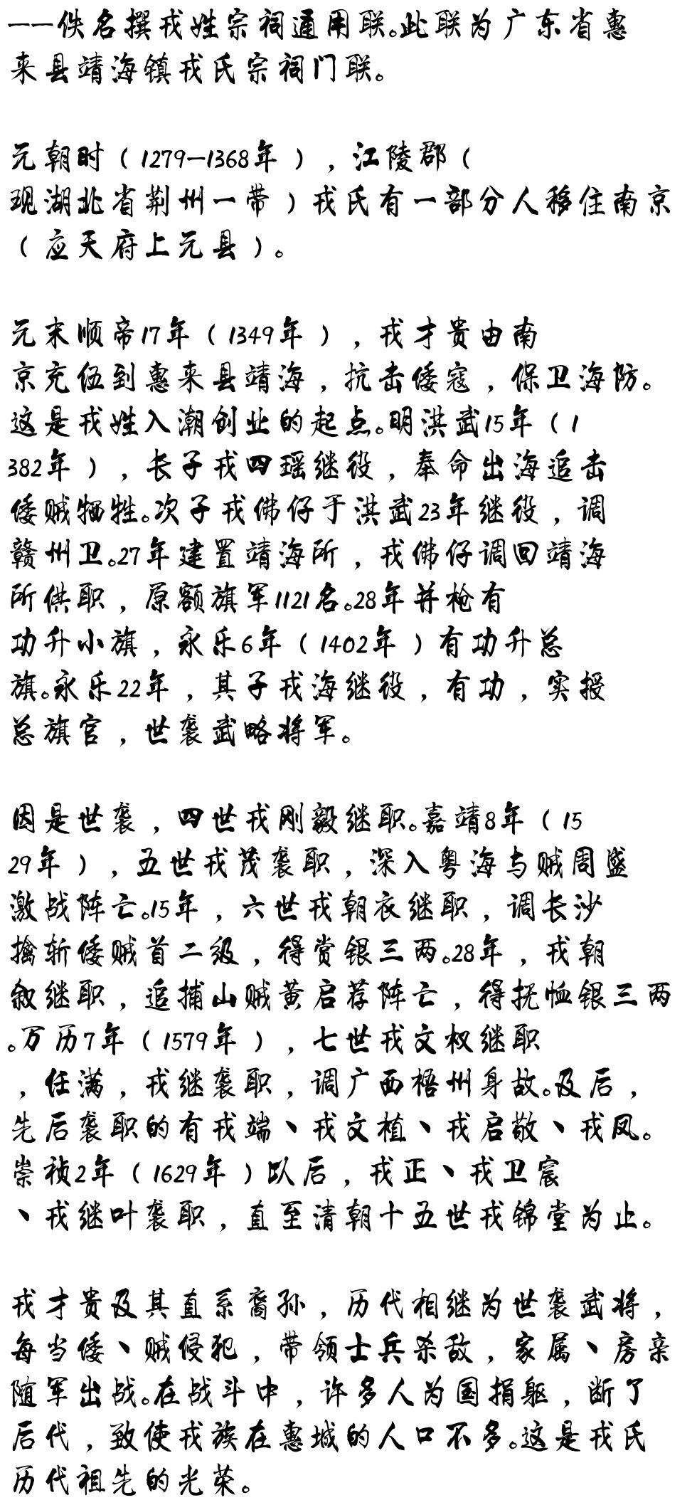 祝愿我的家族,子子孙孙,代代英贤。五谷丰登,百业兴旺。百族协和,四海鹰扬。建此伟业,雄立东方。承继我祖,百世绵延。纵观全球,和平发展。协和百族,辑睦四邻。寿禄无疆,风调雨顺。睦亲敬族,忠国爱乡。并肩携手,共铸辉煌。历马扬鞭,精诚团结。上进治学,耀国显邦。宗族和畅,家富国强。英才代出,耕读治家。