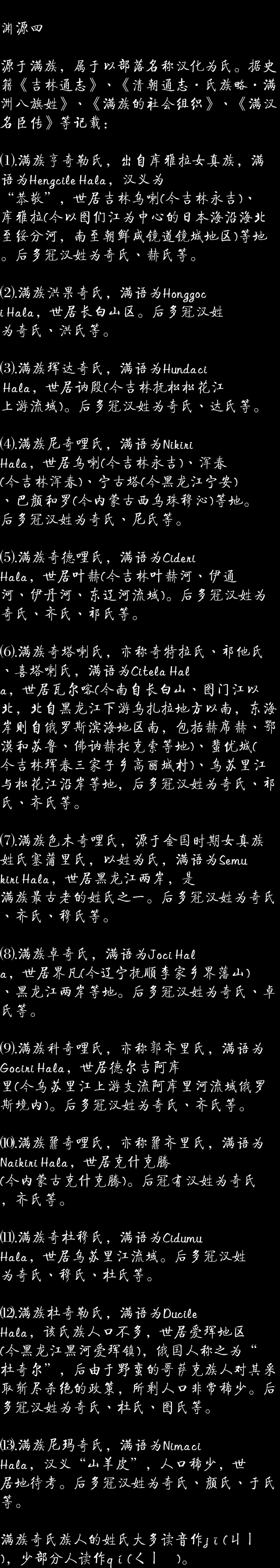 百家姓历史281——奇氏家族资料