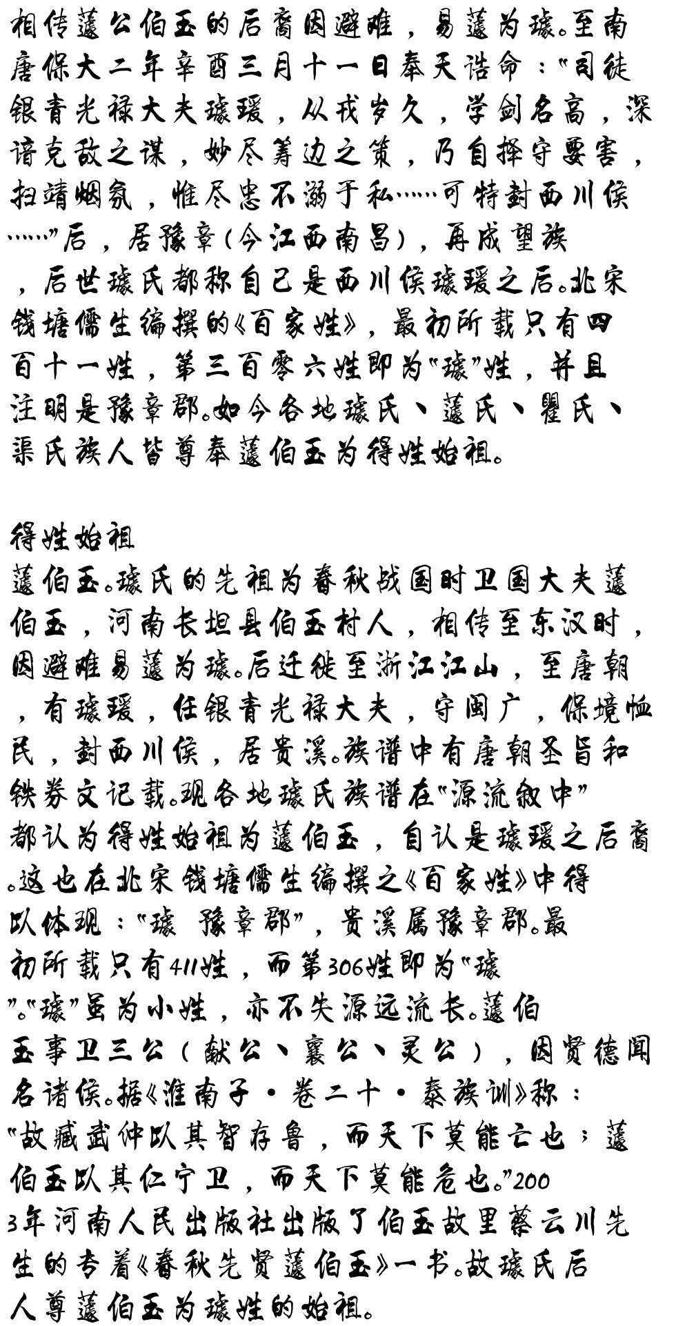 百家姓历史272——璩氏家族简介
