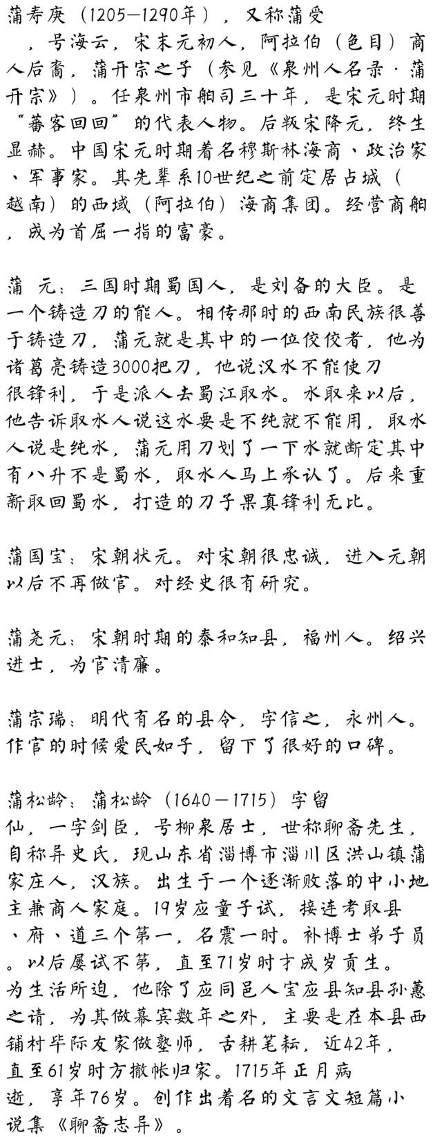 蒲氏名人
