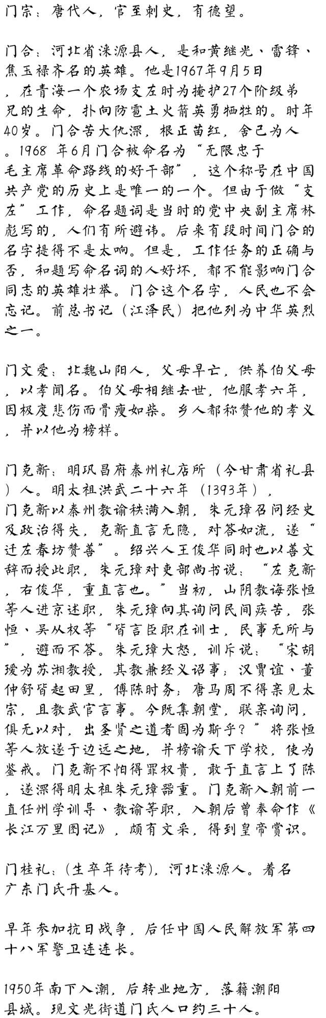 百家姓历史235——门氏家族简介