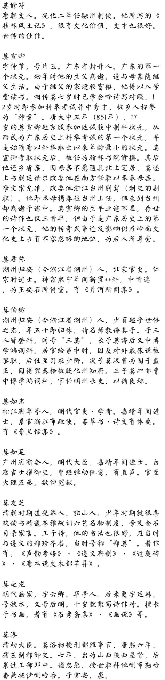 百家姓历史225——莫氏家族简介