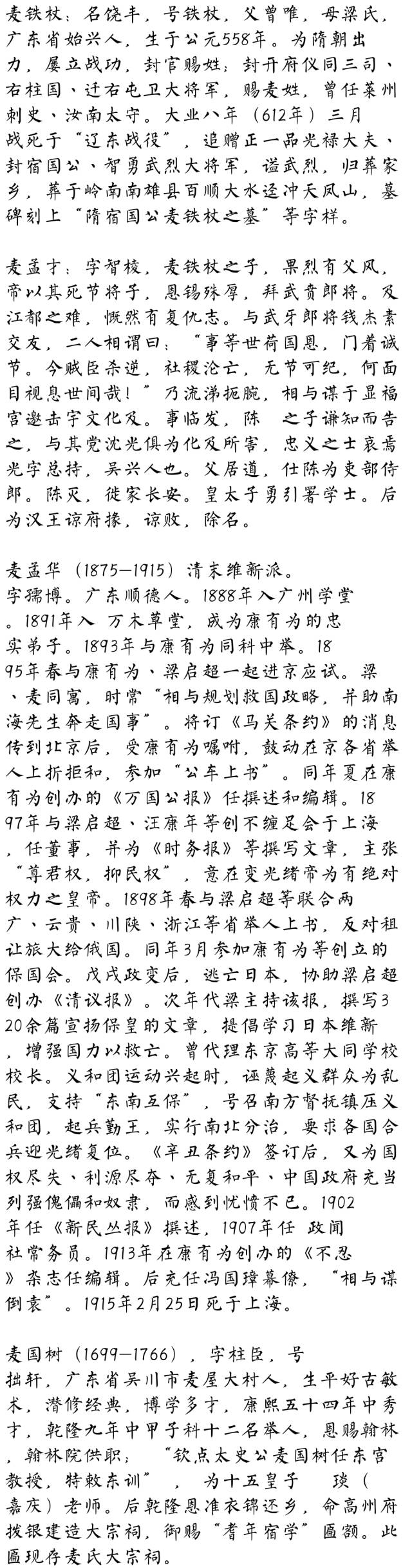 百家姓历史223——麦氏家族简介