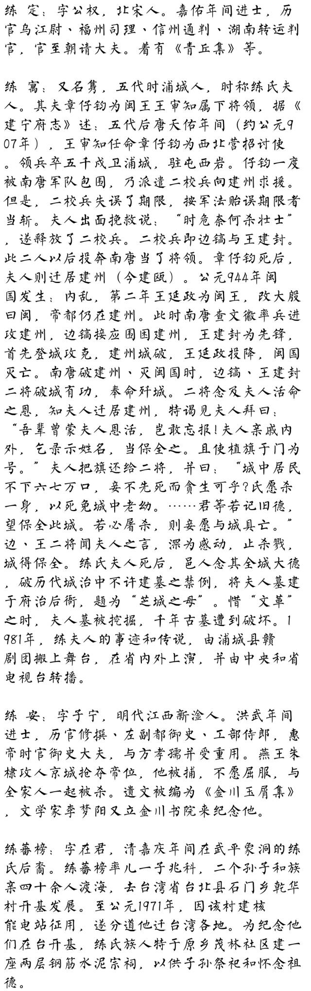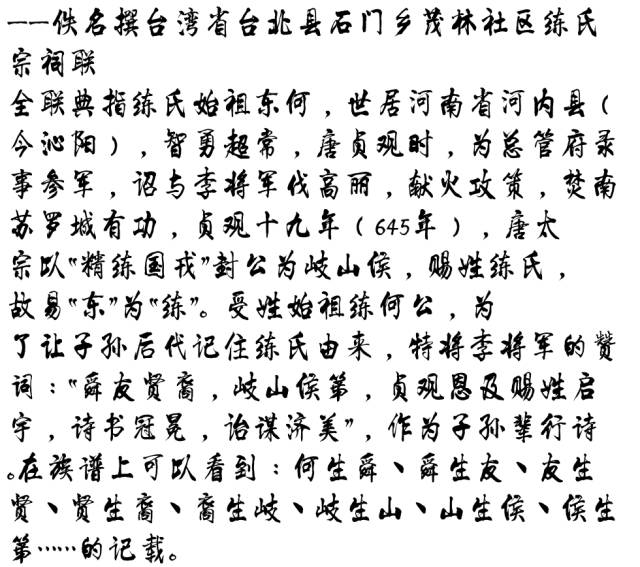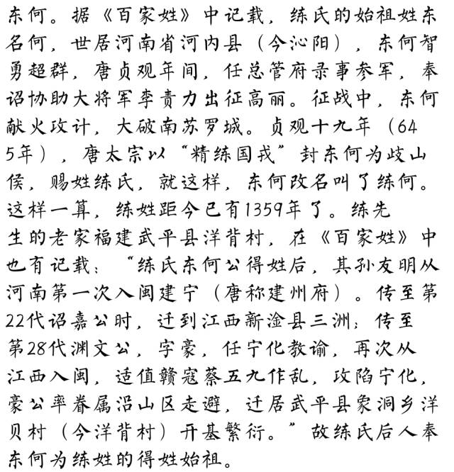 百家姓历史209——练氏家族简介