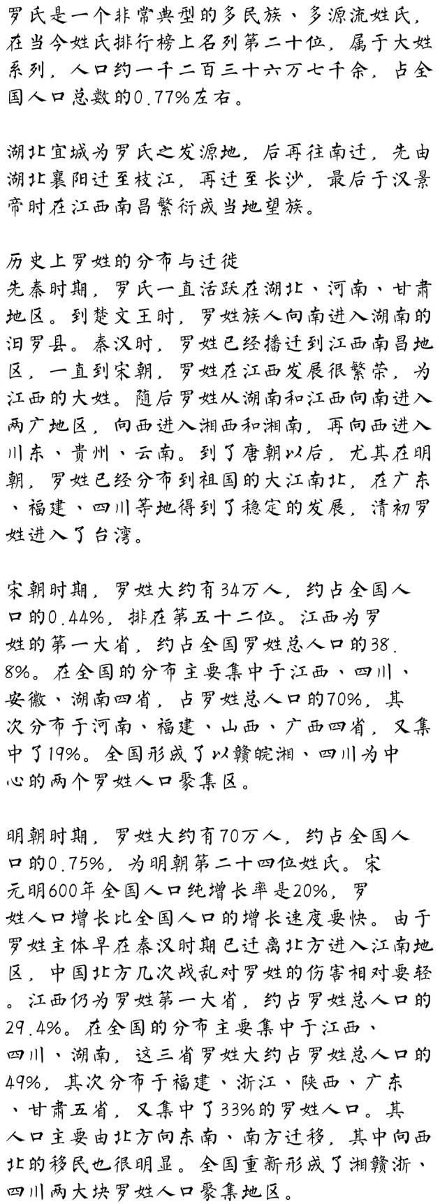 看后才知罗姓还是个大姓,全国数量之大,位列百家姓前二十几位。我们是四川宜宾一支,字辈排名如下:正鸿文明顺,富贵传家帮。福寿德增祥,太平大吉昌。有木有同样的?