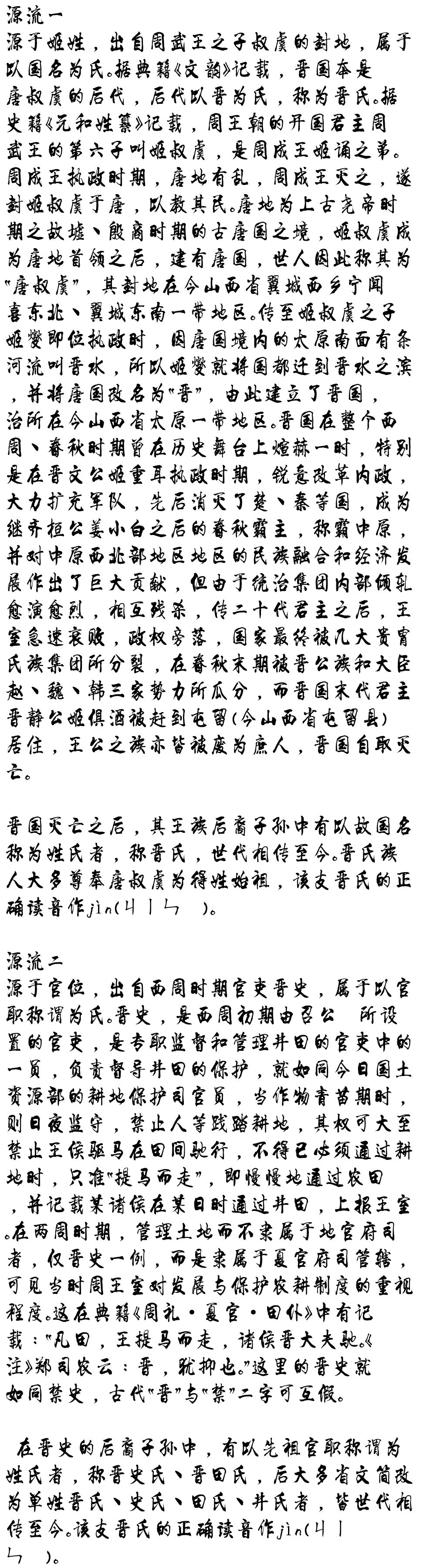 晋姓源流