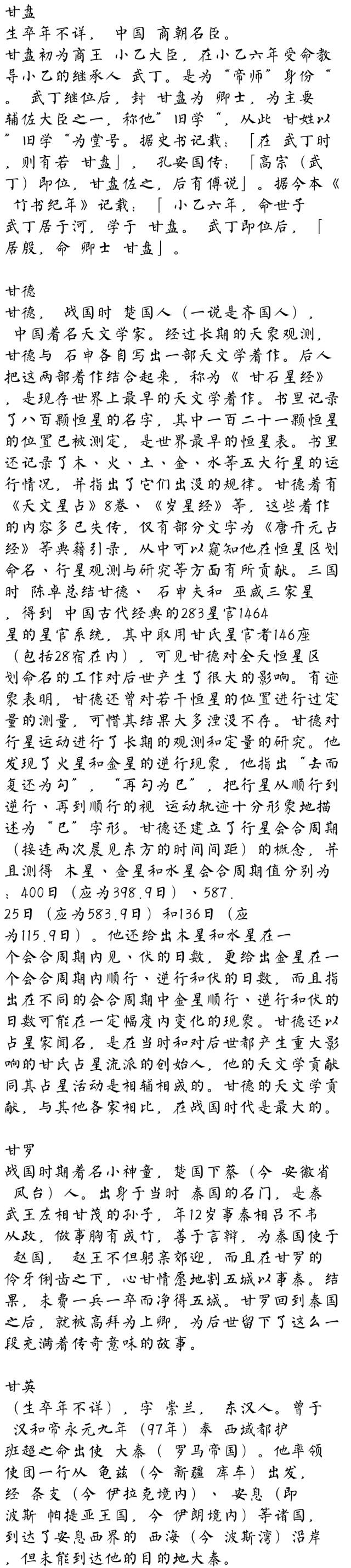 百家姓历史118——甘氏家族起源