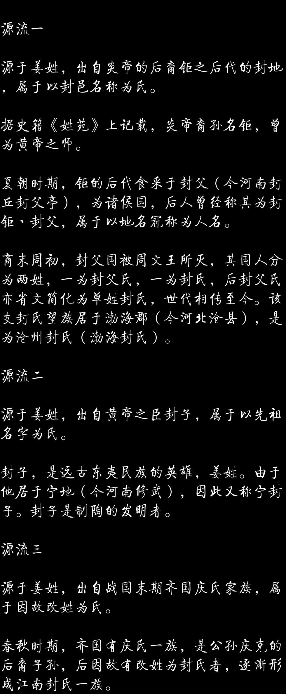 百家姓历史105——封氏家族资料