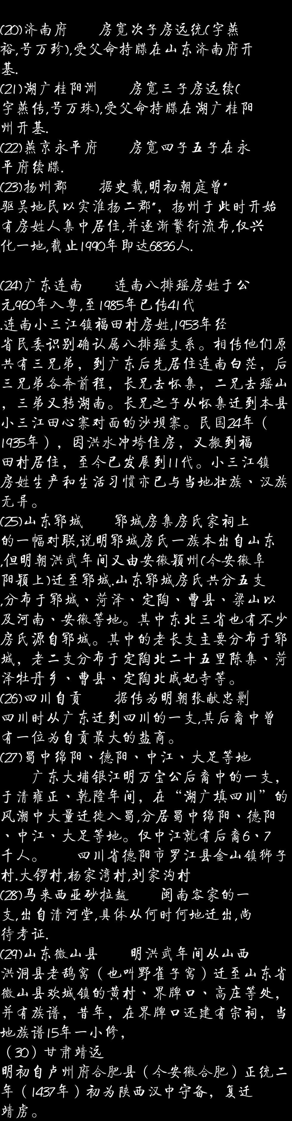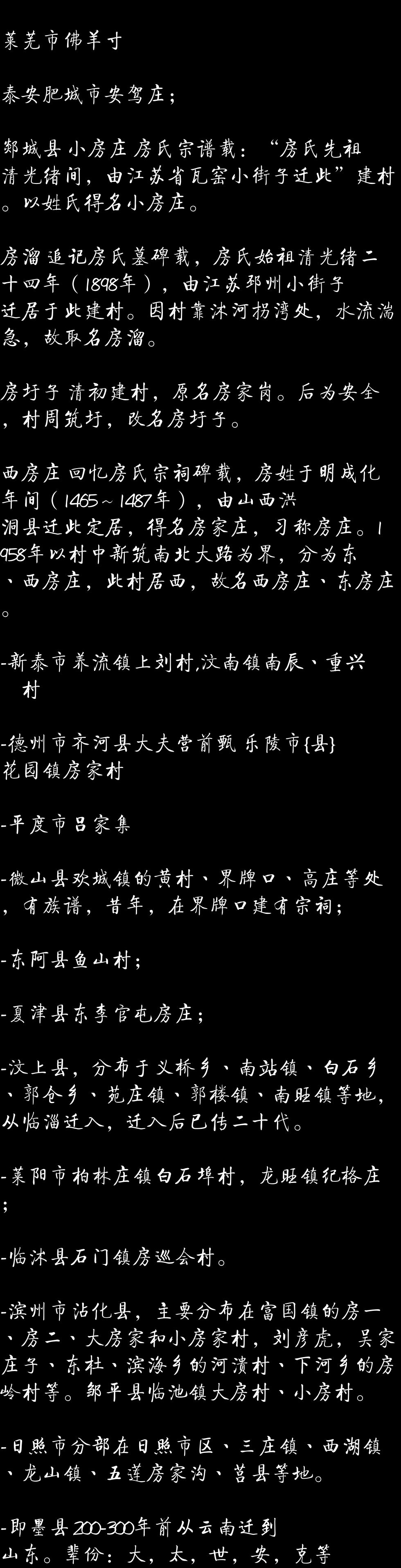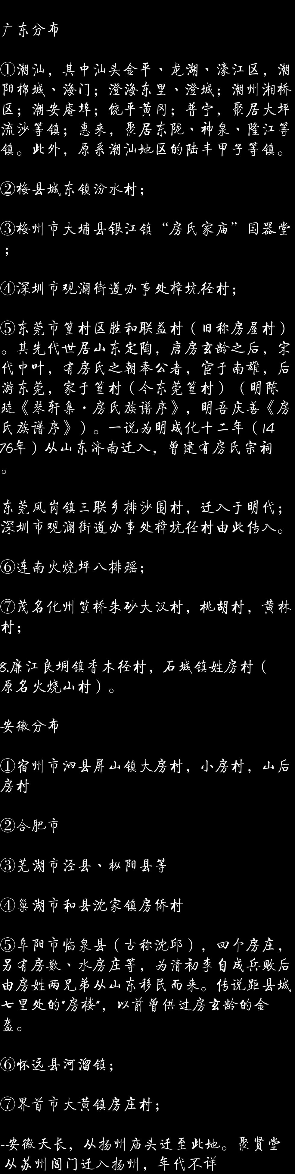 房姓迁徒情况
