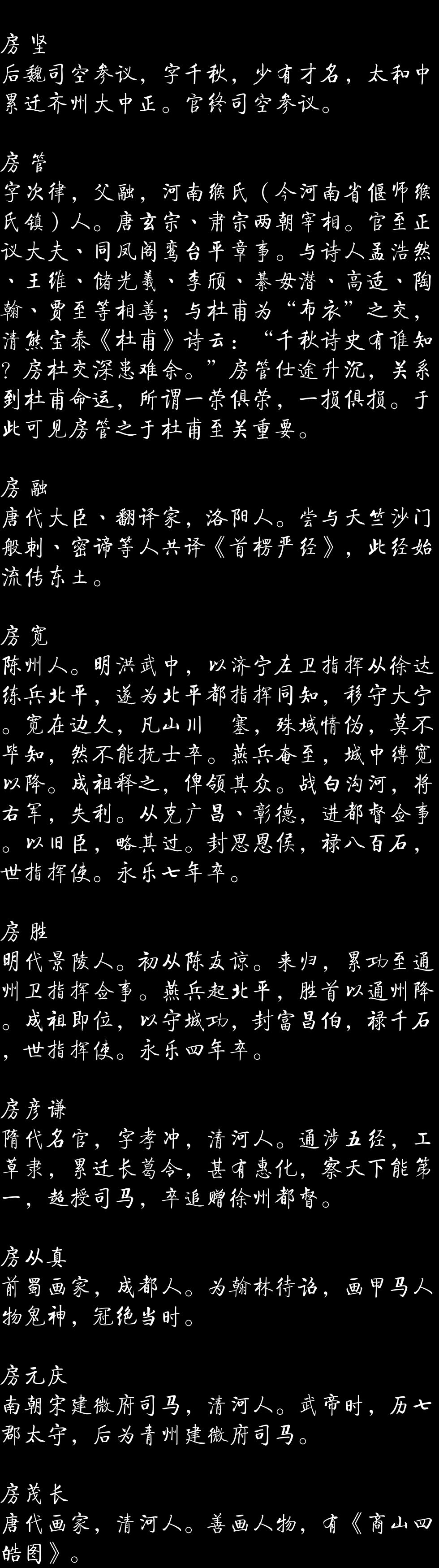 百家姓历史101——房氏家族资料