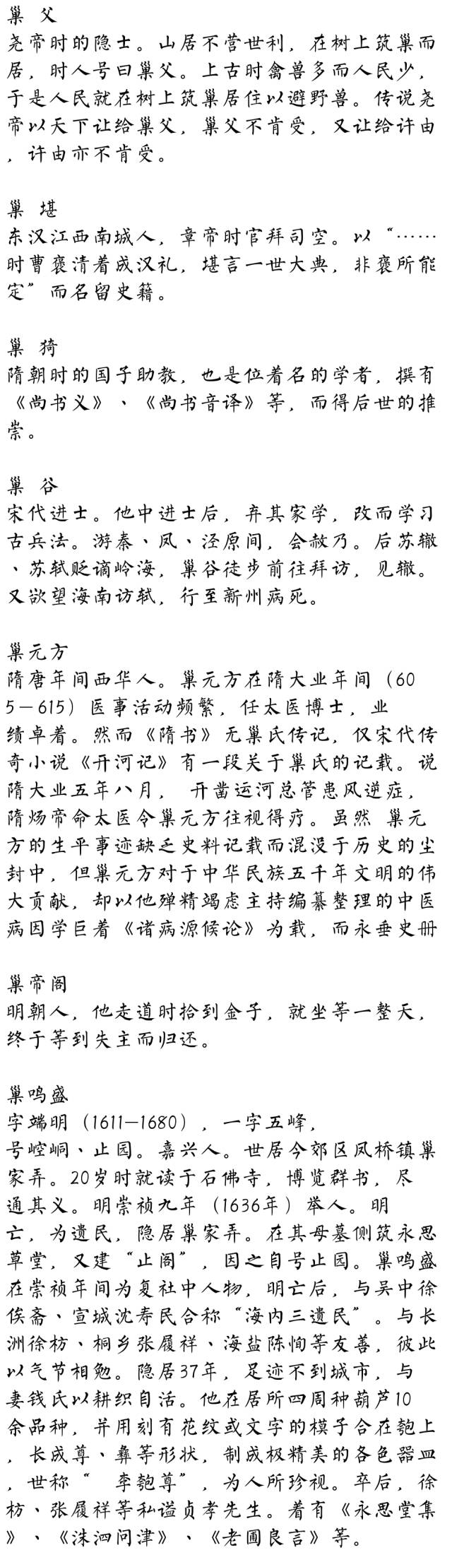 百家姓历史072——巢氏家族简介