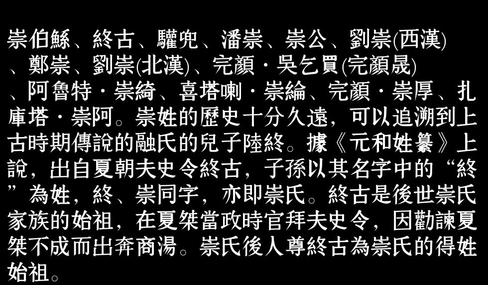 百家姓历史052——崇氏家族资料