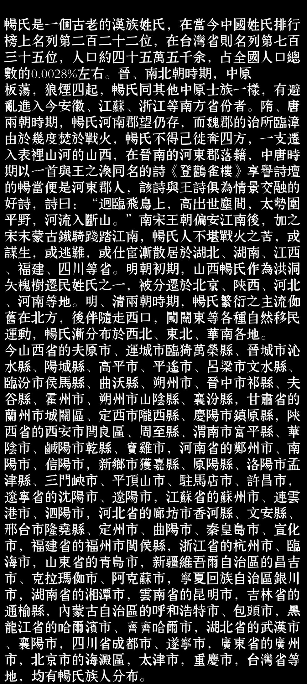 百家姓历史051——畅氏家族资料