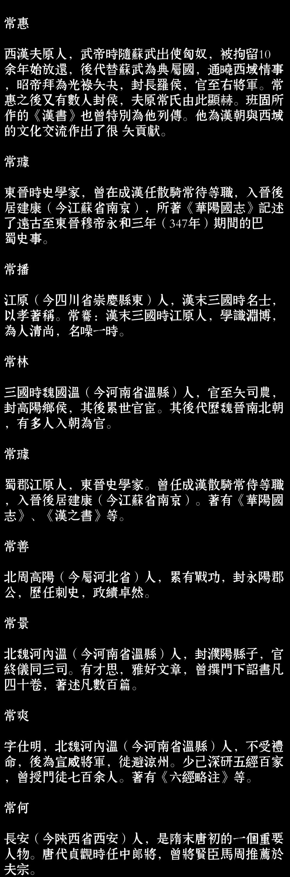 百家姓历史042——常氏家族资料