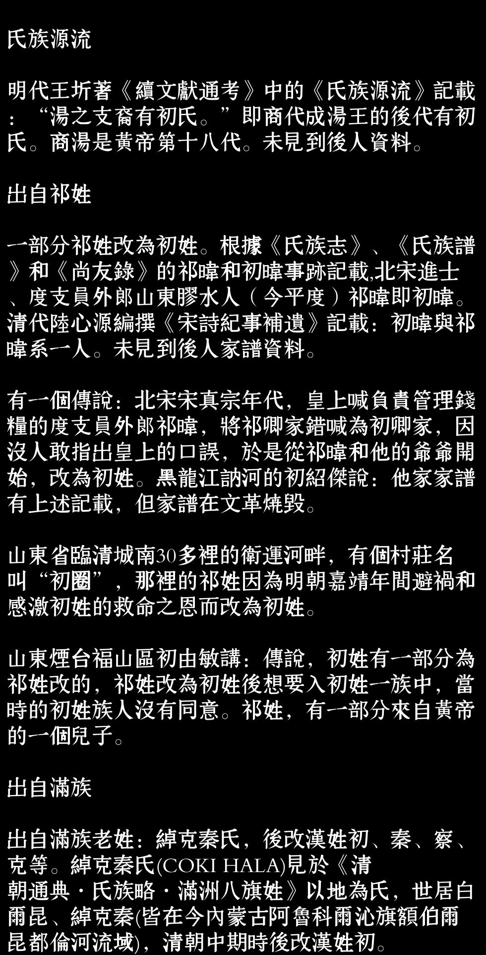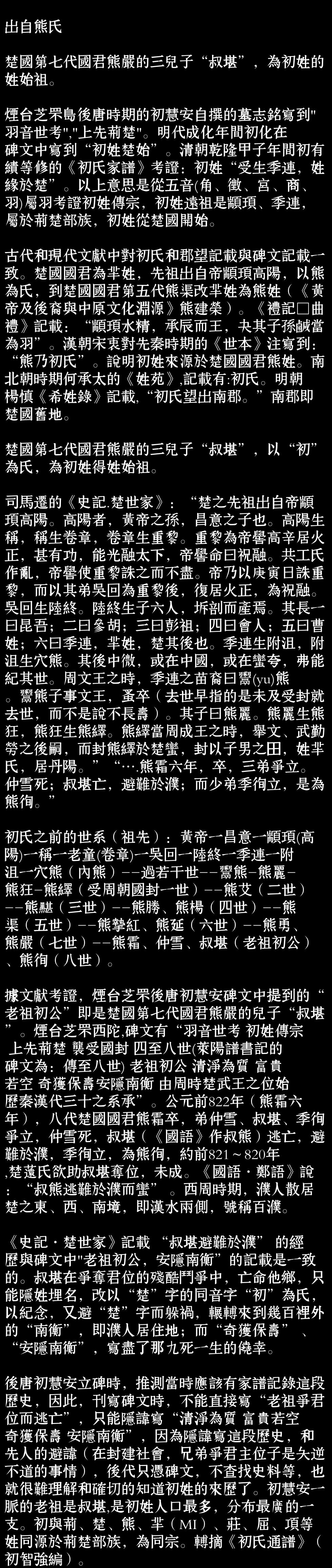 百家姓历史038——初氏家族资料