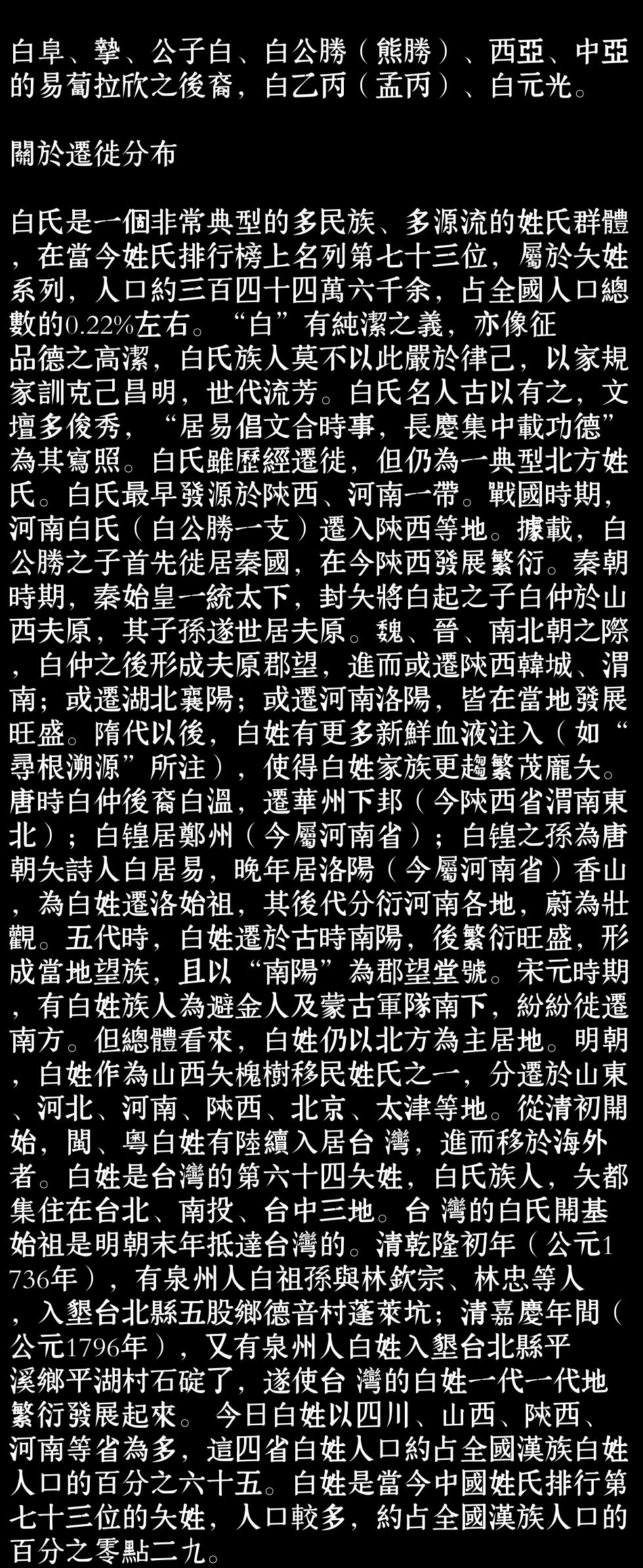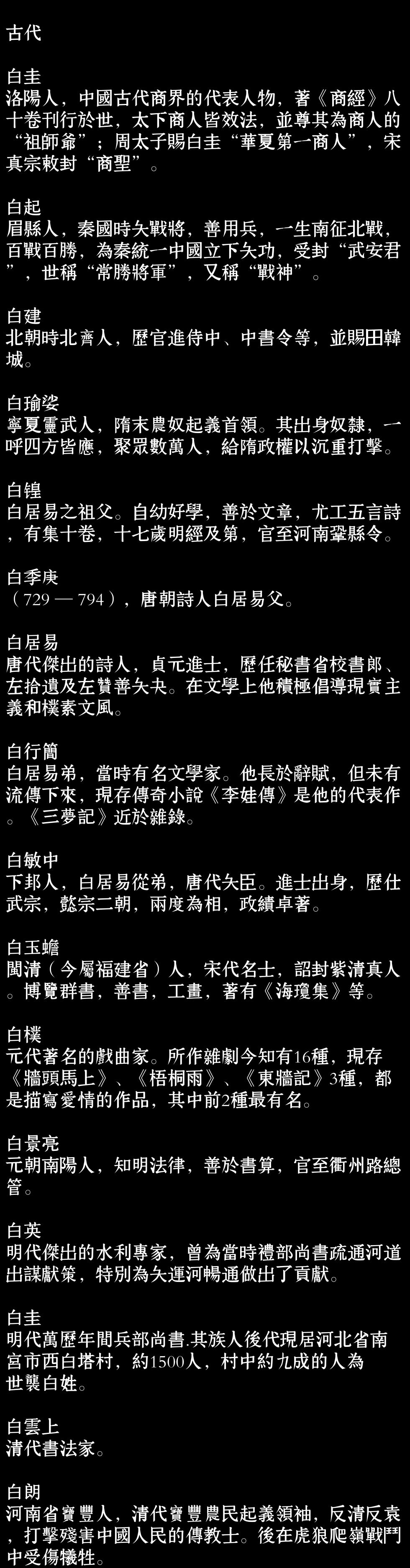 百家姓历史010——白氏家族资料