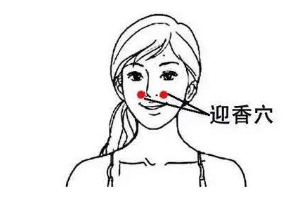 仰卧,按摩者用双手拇指分别同时点揉双侧迎香穴1分钟,以有酸胀感为度。