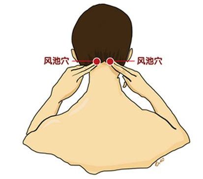 正坐,按摩者用一手拇指和食指同时点揉双侧风池穴1分钟,以有酸胀感为度。