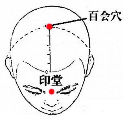 仰卧,按摩者用两手扶头部两侧,两拇指指腹从印堂穴交替向上推入发际,力量稍重,时间1分钟;然后点揉印堂穴半分钟,以有酸胀感为度。