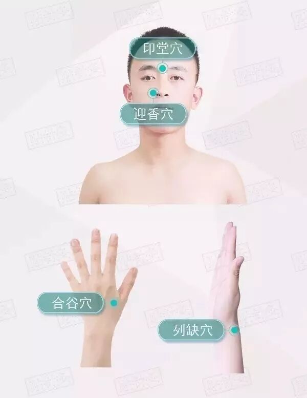 按揉迎香穴、印堂穴