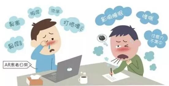 过敏性鼻炎(AR),也称变应性鼻炎,是特应性个体(易过敏人群)接触过敏原(尘螨、花粉、动物毛发等)后由免疫球蛋白(IgE)介导的鼻黏膜炎症反应性疾病,其主要症状是反复喷嚏、清涕、鼻塞和鼻痒,患者常伴眼痒、结膜充血和/或流泪。